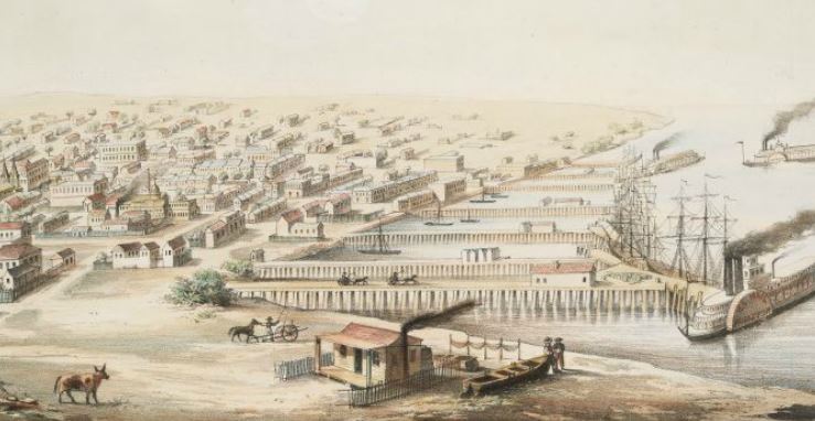New Amsterdam on the south end of Manhattan Island c. 1670. Artwork by Len Tantillo. Image from http://nationalgeographic.org/activity/exploring-early-manhattan-through-art/. (Click on image for a larger view.)